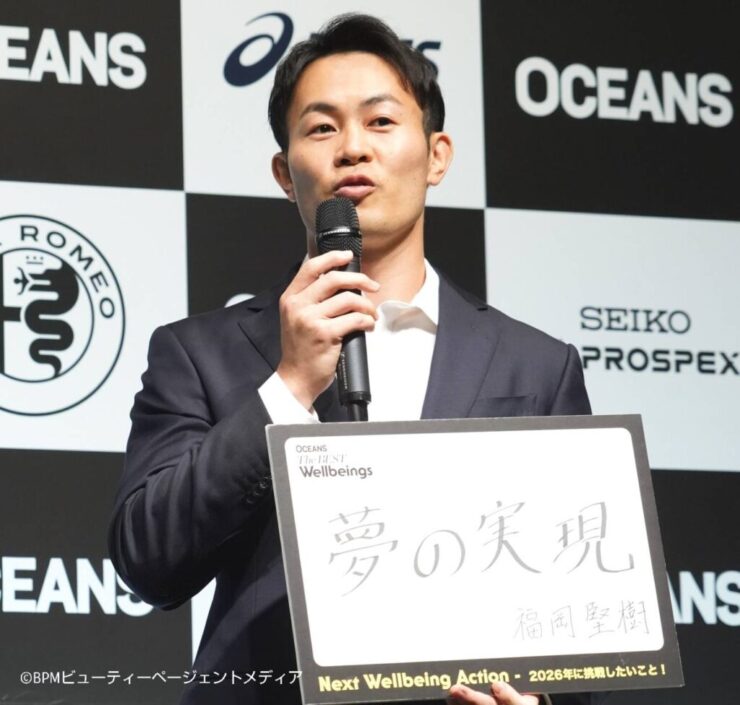 10月13日(月)都内にて、ファッションを中心にしたライフスタイルメディア『OCEANS(オーシャンズ)』が、オンもオフもどちらも充実しハッピーなパワーを持つ人、価値観を皆で共感することを目的に、山田優、岩田剛典、山崎静代、永野らを「今年一番いい顔」に選出した。 セレモニーには、俳優・モデルとして幅広く活躍し、現在は母として育児にも奮闘中の山田優さん、芸人、俳優としても活躍する南海キャンディーズの山崎静代さん、元ラグビー日本代表で現役医大生の福岡堅樹さん、英語コーチングプログラムで話題の株式会社プログリット 代表取締役社長岡田祥吾さんが登壇。壇上でも「今年一番いい顔」を見せた。 アワード受賞者の選考基準は「ライフとワーク、両面が輝いていた人」「世の中に新しい価値観をインプットした人」「周りに元気と勇気を与える挑戦をした人」の3つ。 受賞者9名は、坂本美雨、鞘師里保、永野、福岡堅樹、山崎静代(南海キャンディーズ)、吉田浩一郎、 山田優<nuna特別賞>、岩田剛典<SEIKO Prospex特別賞>、岡田祥吾<asics WALKING特別賞> 山田優さん「小さな幸せを見逃さない!Happyの秘訣」 nuna特別賞を受賞した山田さんは、喜びの気持ちを次のように語った。「モデルとして、そして母として、日常の中で起きることを大切に生きてきました。その姿勢を評価していただけたことを大変うれしく思っています。これからも家族との時間や日々の暮らしを大切にしながら、活動を続けていけたらと思います」と穏やかな笑顔を見せた。 また、自身が“Happy”になれる瞬間について聞かれると、「常に笑顔でいられるように過ごすことを心がけています。子どもが何かを作ったり、きれいな花が咲いていたりすると“Happy!”って思います。日々、小さな幸せを見逃さないように、常にアンテナを張っています」と、“幸せの見つけ方”を明かした。 2026年に挑戦してみたいことを聞かれた山田さんは、「来年は語学に力を入れたい。英語と韓国語を極めたいです!」と意気込みを見せた。仕事で英語を使う機会が増え、韓国での活動も広がっていることに加え、「韓国のアイドルやドラマが好き」という個人的なきっかけも明かし、笑顔を見せた。 南海キャンディーズ 山崎静代さん「旦那を奄美に連れていく!」 南海キャンディーズの“しずちゃん”こと山崎静代さんは、「正直、“なんで私なんかが?”って思ったんですけど、(ボクシング・ロンドンオリンピック金メダリストの)村田諒太さんが推薦してくださったと聞いて、“ボクシングやっててよかったな”と思いました」と笑いを誘った。さらに「仕事もプライベートも充実した人に贈られる賞とのことなので、これからも悪いことはせず(笑)、良い生き方をして、ますます充実していけるように頑張ります」と受賞の喜びを明るく語った。 「旦那さんを奄美に連れて行ってあげたい」 『奄美大島に行きたい』とフリップに書いたしずちゃん。「他の方の“やってみたいこと”と比べて、ちょっと薄っぺらいのでは」と笑わせつつ、実は奄美大島には一人旅で2度訪れたことがあるほど大好きな場所だと明かした。続けて、「最近結婚したんですが、夫はあまり外に出るタイプではなくて。奄美のいろんな景色を見せてあげたいんです」と、穏やかな笑顔で優しさをのぞかせた。 また、旅行以外での夢を問われると、「シャンソンを歌えるようになりたい」と憧れを語った。 福岡堅樹さん「トップアスリートと医師の二刀流。アスリートのセカンドキャリアの指針になりたい」 元ラグビー日本代表で、現在は順天堂大学医学部5年生の福岡さんは、「今回のテーマ“Wellbeing”。自分自身、医療現場におけるWellbeingの重要性を学んでいるところです。心と体の健康、そしてこれまで取り組んできたスポーツの面からも、Wellbeingとは非常に関わりが深いと感じています。また、アスリートにとって“セカンドキャリア”は大きな課題。これからさまざまな道へ進んでいくアスリートたちにとって、良い道しるべとなれるよう努めていきたい」と語った。 来年は医師としてのセカンドキャリアをスタートさせる! 元ラグビー日本代表で、現在は現役の医大生として学ぶ福岡堅樹さん。2026年の夢を、「シンプルに『夢の実現』」と書き込んだ。「来年は医学部6年生となり、いよいよ卒業・医師になるタイミング。ラグビーでの夢を叶えられたように、今度は“医師になる”というもう一つの夢を実現させたい」と力強く語った。 岡田祥吾さん 「地球を楽しみ尽くしたい!」 受賞の感想を求められた岡田さんは、「今回のテーマは“Wellbeing”ということですが、私の中では『自分がやりたいこと、成し遂げたいことに対して、自分の意志で突き進んでいくこと』なのではないかと思っています。これからも自分の意志に従い、やりたいことを一つひとつ実現していきたい」と力強く語った。 地球を楽しみ尽くしたい! 『経験したことがないことをする』とフリップに