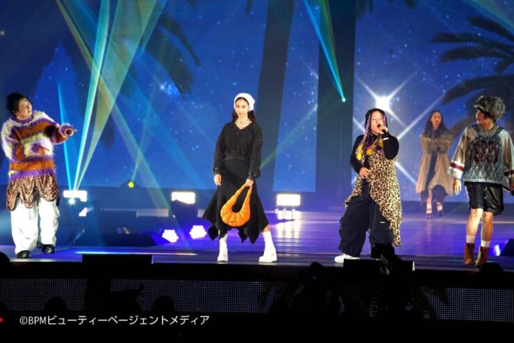 10月18日(土)、千葉・幕張メッセにて開催された『Rakuten GirlsAward 2025 AUTUMN/WINTER』。15周年を迎えた今回は、「ANNA SUI NYC × MyM」スペシャルファッションステージに、音楽ユニット『MyM(マイムー)』が登場。圧巻のパフォーマンスと軽快なトークで、会場を笑いと歓声に包み込んだ。 森三中の大島美幸と、がんばれルーヤのよしこ・まひるによるアーティストユニット、『MyM(マイムー』がガルアワ2025AWのステージに登場。恋愛経験ほぼゼロの3人が、わずかな恋愛経験を絞り出して作詞した恋愛ソング「おまんじゅうこわい」を披露した。「みんなも一緒に歌ってね!」と呼びかけた直後に、「誰も知らねえだろ!」と絶妙なツッコミを入れると、会場は大爆笑。笑いと音楽が見事に溶け合い、3人の明るいパフォーマンスに観客も笑顔と拍手で応えた。全力で“笑い”と“ハッピー”を届けた、ガルアワらしいあたたかなステージとなった。