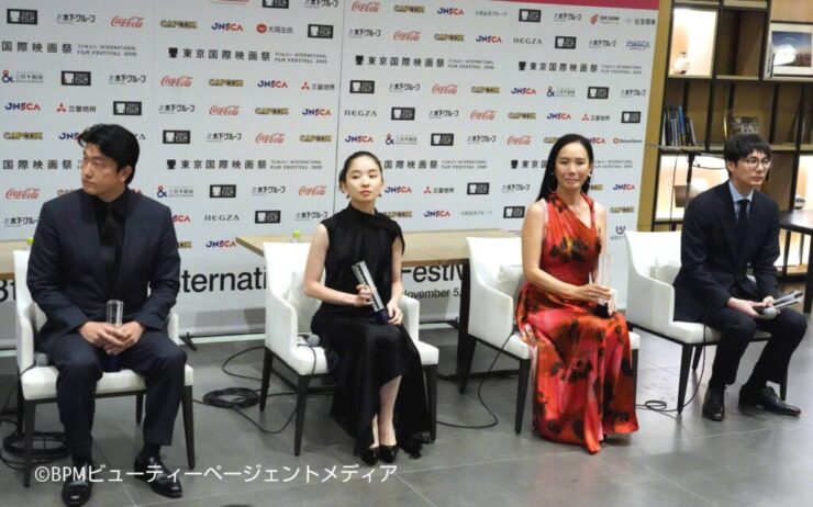 11月5日(水)、38回東京国際映画祭の閉幕を迎え、受賞者記者会見が開催された。東京グランプリは『パレスチナ36』が受賞!『春の木』が最優秀監督賞・最優秀男優賞の2冠達成!日本映画『恒星の向こう側』が最優秀女優賞を受賞!さらに『金髪』が観客賞を受賞! 審査委員記者会見に登壇したのは、コンペティション部門国際審査委員の5名(カルロ・シャトリアン、グイ・ルンメイ、マチュー・ラクロー、齊藤工、ヴィヴィアン・チュウ)。 審査委員長を務めたカルロ・シャトリアン氏は、「多様な背景を持つ審査員が一体感を持って審査を進めることができた」と充実の表情を見せた。続いてヴィヴィアン・チュウ氏は、「選出作品の幅広さに、現代映画の多様性を強く感じました」と語り、マチュー・ラクロー氏も「素晴らしい仲間と映画を語り合えたことは特別な経験でした」と振り返った。俳優のグイ・ルンメイ氏は、「議論を通じて映画への理解がより深まった」とコメント。日本から審査員として参加した齊藤工氏は、「この4名と映画の海を泳いだ10日間は夢のようでした。互いを尊重し合う素晴らしいチームでした」と笑顔で締めくくった。 パレスチナ36(東京グランプリ/東京都知事賞) 左から リティ・パン監督、ワーディ・エイラブーニ、テオナ・ストゥルガル・ミテフスカ監督 『パレスチナ36』からは出演者のワーディ・エイラブーニらが出席。監督からは「他の人になりきろうとするのではなく、あなた自身のままでいていい。あなたがこの状況にあるならどう感じるのか。そのシチュエーションを感じながら、想像しながら演じてみなさい」と言われたそうで、「自分の心が感じるままに演じさせていただきました」と述懐。「映画が公開された暁には、皆さんハッピーな気分になってほしいと思っています。ご覧いただいた通り、非常に見ていて痛ましい、辛い映画ではあるんですけれども、その終盤はハッピーエンドだとわたしは思っていますので、そのように感じ取っていただけたら」とメッセージを送った。 恒星の向こう側(最優秀女優賞)/ 光輪(アジアの未来作品賞)/ 金髪(観客賞) 左から 【光輪】ノ・ヨンワン監督、【恒星の向こう側】福地桃子、河瀨直美、【金髪】坂下雄一郎監督 最優秀女優賞を受賞したのは、『恒星の向こう側』の 福地桃子 と 河瀨直美。まず福地は、受賞の喜びとともに俳優としての心境をこう語った。「これからどんな俳優になっていくのか、どんなふうに年を重ねていくのか、まだ分からないことばかりです。でも、日々の出会いやその瞬間にしか感じられないものが映像に残っていく。そんな“今”を大切にしながら、これからも作品と向き合っていきたいと思えた作品でした。」 続いて河瀨も、ユーモアを交えながら喜びをコメント。「俳優として、今後もやっていく“色気ムンムン”です」と笑いを誘いながら、「受賞式でもお話ししましたが、わたしが俳優としてこの映画祭に参加するのも、そして受賞するのも初めてのこと。監督として長く現場に立ってきましたが、映画という世界では俳優としての可能性もあるのだと感じました」と語った。さらに、「東京国際映画祭は、わたしを“調子に乗らせてしまったな”と思うほど懐の深い映画祭。樹木希林さんにこの賞を捧げたいです」と締めくくり、会場を温かな笑いと拍手で包んだ。 『光輪』のノ・ヨンワン監督は、着想について、まず「宅配ドライバーは人と人をつなぎ、私たちの生活を支える重要な仕事なのに、その存在を意識されにくい」と語る。また、コロナ禍で自身も失業した経験から、本作は“自叙伝的な側面”も持つという。さらに「社会から疎外された人々に寄り添い、少しでも癒しとなる作品にしたかった」と作品に込めた思いを明かした。 日本独特の「校則文化」が海外でどう受け止められたかと問われた『金髪』の坂下雄一郎監督は、「日本国内向けに作った作品なので、校則という独自の文化が海外で伝わるのか不安もありました」と率直な思いを吐露。しかし「今回こうした賞をいただけたことで、少しは伝わるものがあったのだと思います」と語った。 春の木(最優秀監督賞・最優秀男優賞)/ 裏か表か?(最優秀監督賞) 左から チャン・リュル監督、ワン・チュアジン、アレックス・C・ロー 本作が多くの笑いを生んだ理由について問われた『春の木』のチャン監督は、「笑いは言葉より先に生まれた、人間の身体的な反応。言葉は便利だが誤解も生む。映画作家として、言葉や身体表現をどう扱うか、常に試されている」と語った。また、ワン・チュアンジュンは「上海語には“他人の光を借りる”という言葉があります。今回の演技も、共演者や監督、スタッフなど周囲の光を借りて生まれたもの。私は特別なことは何もしていません」と謙虚に喜びを語った。 『裏か表か?』のキャストとして来場したアレックス・C・ローは、共同監督のアレッシオ・リゴ・デ・リーギとマッテオ・ゾッピ