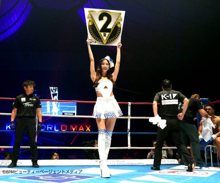 11月15日(土)、国立代々木競技場 第一体育館にて開催された「K-1 WORLD MAX 2025」で、奇跡の9等身ボディを誇る斎藤恭代が初のラウンドガールとして登場。「ミス・アース2017」日本代表、「グラビア・オブ・ザ・イヤー2024」グランプリの肩書きを持つ彼女が、熱戦が繰り広げられるリングに華を添えた。 自身初のラウンドガールとして登場した「ミス・アース2017」日本代表で「グラビア・オブ・ザ・イヤー2024」グランプリ、奇跡の9等身ボディ斎藤恭代さん ミス・アースの経験を胸に、感動のK-1ラウンドガールデビュー 初めてのスペシャルラウンドガールを務めた感想を尋ねられた斎藤恭代さんは、「今回初めてK-1のリングに立たせていただくことができました。選手たちが全精力を掛けて挑むこのリングに、ラウンドガールとして立てたことは光栄で胸がいっぱいでした」と感慨深げに語った。 また、2017年のミス・アース日本代表時代のウォーキング経験については、「8年前に叩き込まれたレッスンを思い出し、今日は四方八方からの視線を意識しながら務めました」と、過去の経験を活かした立ち居振る舞いを振り返った。 おしりに注目!K-1仕様の特製衣装で魅せる“9等身ボディ” 今日の衣装について斎藤さんは、「この衣装はK-1のために、スタイリストさんと一から作り上げた特別なデザインです。K-1カラーである青のグラデーションを取り入れ、強さを表現しつつ、体のラインがどの角度から見ても美しく見えるように、お腹を大胆に見せるカッティングなど細部にこだわりました」と説明。 また、注目してほしい体のパーツを尋ねられると、「“おしり”です。美しい姿勢を保つには、背中とお尻の筋肉が重要なので、日頃から背面を重点的にトレーニングしています。ぜひ後ろ姿にも注目していただけたら嬉しいです」と語った。 「グラビア・オブ・ザ・イヤー2024」グランプリを受賞した斎藤恭代さん。熊田曜子さんやK-1公式応援ギャルのゆうちゃみさんが過去にラウンドガールとして活躍してきたことに質問が及ぶと、「お二人とも華のある方でご活躍を拝見しています。今回の話をいただいた時からたくさん練習し、動画なども参考にさせていただきました。ポージングもお二人を意識して取り入れさせていただいたところがございましたし、少しでも近づけるようこれからも頑張ります」と、意欲を語った。 また、K-1は2026年2月8日(日)に代々木第二体育館で90kg世界最強決定トーナメントを予定していることから、次回もラウンドガールとして参加したいかと聞かれると、「K-1ファミリーの一員として盛り上げたいですし、またお話をいただけたら喜んで伺います!」と笑顔で答えた。