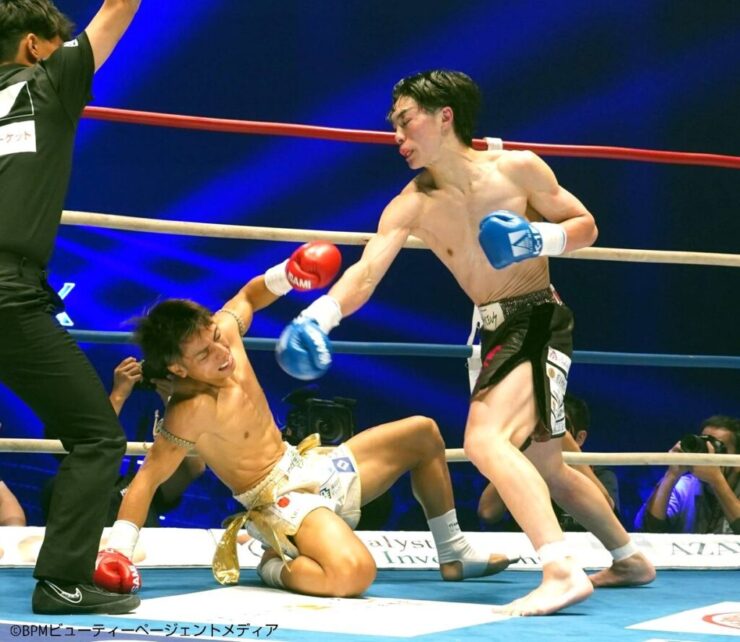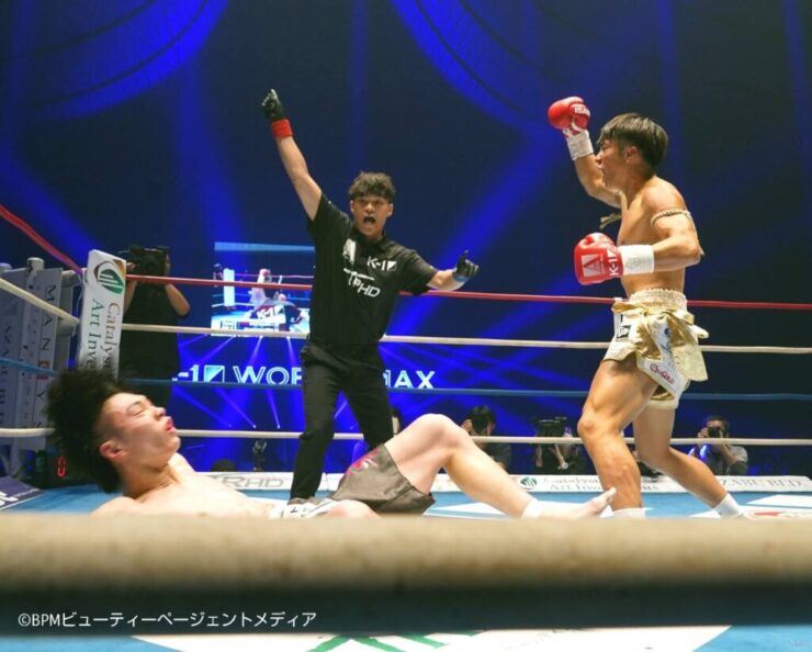11⽉15⽇(土)、国⽴代々⽊競技場 第⼀体育館にて「K-1 WORLD MAX 2025」が開催された。第14試合では、第2代K-1 WORLD GPバンタム級王座決定戦が行われ、石井一成が黒川瑛斗を破り、新王者に輝いた。 第2代K-1 WORLD GPバンタム級王座決定戦/3分3R・延長1R] 〇 石井一成(日本/ウォーワンチャイプロモーション) VS 黒川瑛斗(日本/team VASILEUS) 判定3-0 ※28-26×3 1Rは、互いにローやミドルキックを中心に牽制しながら探り合う展開。石井は前に出て圧力をかけつつ、右ミドルやローでリズムを作る一方、サウスポーの黒川はカウンターの左ストレートやハイキックを狙い続けた。 2Rに入ると試合が加速。黒川の左ハイキックがヒットし、そこからのワンツーで先にダウンを奪取。しかし石井も立ち上がると、すぐに強烈な左フックを叩き込み、ダウンを奪い返す。互いに譲らぬ応酬を見せ、打ち合いに入るも激戦が続いた。 3Rは激しい攻防が繰り広げられ、黒川の飛びヒザ蹴りからの連打で一気に攻め込む展開に。石井も前蹴りやハイキックで応戦。ローブローによる一時中断の再開後に石井が右のパンチでダウンを奪取。黒川は挑発しながら打ち返すも、最後は石井が主導権を握り、3-0の判定勝ちで新王者に輝いた。 勝利者インタビューで石井は、「3年前のトーナメントで敗れ、このまま格闘技人生を終えることはできないと思い、このリングに再び立ちました。20年前、魔裟斗さんに憧れてキックボクシングを始め、絶対にK-1のベルトを巻くと決めていたので、今回勝てて本当に嬉しいです。 実は、今回の試合は勝っても負けても引退すると父や母に伝えていました。しかし、試合に向けて多くの応援と支援を受け、練習を重ねるうちに、やはり僕にはこれしかないと気づきました。チャンピオンになったからには、世界最強を目指していきたいと思います。これからも応援よろしくお願いします」と、熱い想いを語った。 K-1プロデューサーの須藤元気氏は試合後、「ベストバウトと言ってもいいくらい、新生K-1と言われていた時代を思わせる“倒し合い”の試合で、会場も一番盛り上がったのではないでしょうか。この試合は“もう一度観たい”と思わせてくれるものだったので、またいつか同じカードが組まれる可能性もあるのかなと感じました」とコメントした。
