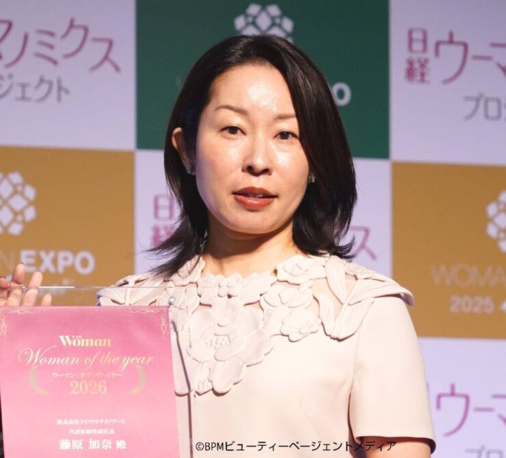 11⽉29⽇(⼟)都内にて、『⽇経ウーマン』が、今年各界で⽬覚ましい活躍を遂げた⼥性を表彰するアワード「ウーマン・オブ・ザ・イヤー」が開催され、「⼤阪・関⻄万博」や「国宝」を舞台に活躍された女性など、全7名が表彰された。 【⼤賞】永⼭祐⼦さん/永⼭祐⼦建築設計 取締役 ドバイ万博の資材を⼤阪・関⻄万博でリユースし、女性活躍がテーマの「ウーマンズ・パビリオン」などを手掛ける。2児の出産を機に人に任せる体制にシフト。「東急歌舞伎町タワー」や「Torch Tower」など、大規模プロジェクトの設計も手掛ける。 永山さんは、先ほど、”ナチュラル・ボーン・チャレンジャー”と言っていただきましたが、23年前、26歳で独立した当時を振り返り、「何もわからないまま事務所を立ち上げたのは無謀でした」と振り返る。立ち上げ当初のスタッフ2人も女性で、女性3人の建築事務所は当時珍しく、周囲から驚かれたという。 昨日参加した建築関連の授賞式でも、参加者の約95%が男性だったと述べ、いまだに女性が少ない業界であることを実感した一方、大学では学生の半数が女性になってきており、「今後は“女性建築家”という言い方自体がなくなるのでは」と未来への期待を語った。 また、今年は自身にとって節目の年となった。23年間走り続け、初の作品集をまとめてみると、これまでに手がけたプロジェクトは114作品。商品から超高層建築まで、スケールも分野も幅広い挑戦を続けてきた。その中でも、今年は大阪・関西万博の2つのパビリオン設計を任される大きな機会があった。ドバイ万博の日本館から「リユース」を前提に設計を進め、自分の理念を理解し協力してくれた大林組、山九をはじめ多くの企業の支えによって「リユース」での展開が実現できたと感謝を述べた。 最後に永山さんは、「願えば叶う」「口に出すと叶う」という信念を紹介し、やりたいことは積極的に発信し続けることで、無謀に見える挑戦も実現してきたと語った。 【受賞】⾚⽊円⾹さん/AgeWellJapan 代表取締役社⻑ シニアのウェルビーイング向上を軸に、新たなシニア市場を開拓。BtoB事業の売上⾼が開始1年で3倍に。 ウーマン・オブ・ザ・イヤー2026の受賞にあたり、赤木さんはまず、AgeWellを利用しているシニアの方々、そして200名を超えるAgeWellデザイナーやチームメンバーへの感謝を述べた。 AgeWell創業の背景には、祖母の「私は少し長く生きすぎてしまったのかもしれない」という言葉があるという。長寿大国・日本において、「100歳まで生きたい」と答える人は21%にとどまり、“長生きしたいと思えない社会”が現実として存在している。この状況こそが、高齢社会が抱える本質的な課題であり、ビジネスで解決を目指すのは決して容易ではないと語った。 それでも赤木さんは、仲間とともに笑顔で、楽しさを大切にしながら社会課題に挑んでいると述べる。「日本は課題先進国と言われますが、いつかAgeWellの先進国と呼ばれるよう、世界のロールモデルになりたい」と、今後の決意を示した。 【受賞】⼩川久美⼦さん/⾐装デザイナー 興収170 億円ヒットとなった『国宝』の⾐装デザイナー。映画⾐装の第⼀線で若⼿を導く76 歳 小川さんは、「李監督からのメッセージを知らされておらず、動揺しました」と笑顔を見せた。20代でスタイリストとしてのキャリアをスタートし、20代後半には薬師丸ひろ子の衣装や写真集を担当。その流れから映画『セーラー服と機関銃』の衣装も任されることになったという。 当時、映画の衣装という専門部門はまだ確立されておらず、いわば“男社会の象徴”である映画業界の中で、小川さんは監督ごとの明確な価値観の違いを面白いと感じながら、自身の美意識と作品に求められる役割のバランスを模索してきたと語る。「大変ではあったけれど、それ以上に刺激的で面白かった」と振り返った。 さらに、「実はそろそろ仕事を少し減らそうかと思っていたんです」とユーモアを交えつつ、これからも“楽しくて、面白くて、でも苦しい”、そんなクリエイティブの現場の魅力を知ってほしいとメッセージを送った。 【受賞】公⽂和⼦さん/シロアムの園 代表 ケニアで、療育・医療・教育・家族⽀援を⾏う障がい児⽀援施設「シロアムの園」を運営する⼩児科医 公文さんは、今回の受賞を「自分一人のものではなく、大切な友人たちの存在を伝える機会にしたい」と語った。世の中には、ただ“知られていない”という理由だけで、尊厳が守られないまま生きている人たちが数多くいると指摘する。 公文さんが思いを寄せるのは、マラカスとおばあちゃんが大好きだった、自閉症・てんかん・重度知的障害のある男の子の友人だ。彼は経済的困難や差別、偏見と日々向き合いながらも、社会からほとんど注目されることなく、15歳で生涯を終えた。しかし公文さんは、「彼は決して弱い存在ではなかった」と強調する。 その友人は、おばあちゃんにとって、そして公文さんや仲間にと